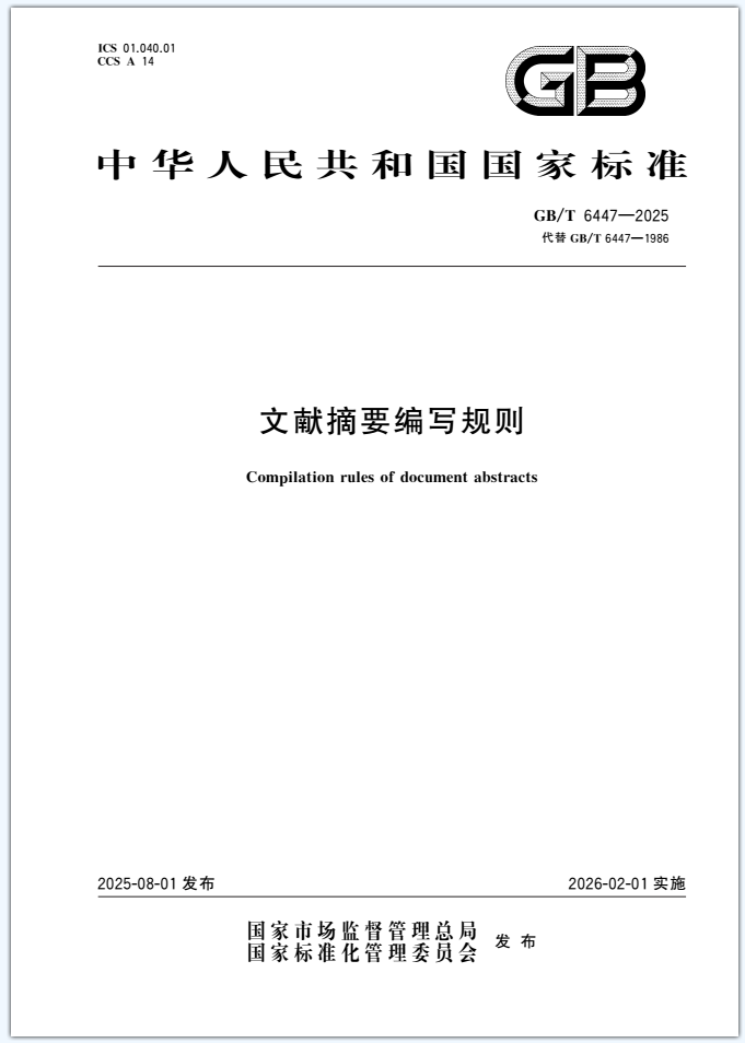 本文件规定了文献摘要的篇幅、构成要素、编写要点和编写细则。 本文件适用于编写自然科学类、人文社会科学类文献摘要,既适用于编写一次文献摘要,也适用于编写二次文献摘要,其他文献摘要的编写参照执行。 注:在不引起混淆的情况下,本文件中的“文献摘要”简称为“摘要”。