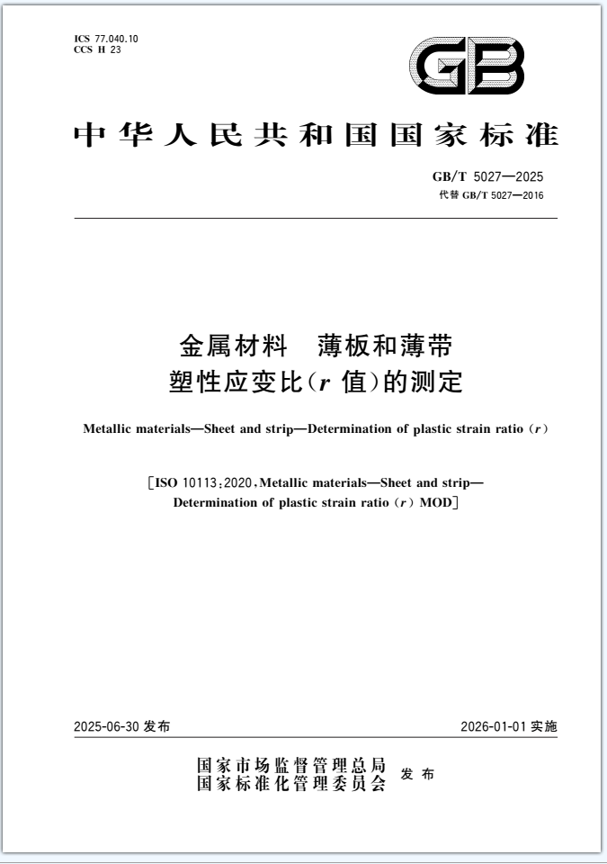 本文件规定了金属薄板和薄带塑性应变比测定的原理、试验设备、试样、试验程序、附加试验结果和试验报告。 本文件适用于金属薄板和薄带塑性应变比的测定。