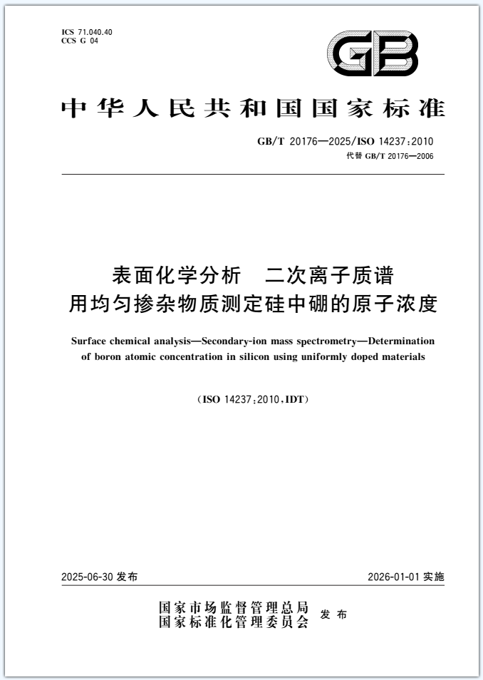 本文件详细说明了用标定的均匀掺杂物质(用注入硼的参考物质校准)确定单晶硅中硼的原子浓度的二次离子质谱方法。它适用于均匀掺杂硼浓度范围从1×1016 atoms/cm3~1×1020 atoms/cm3。