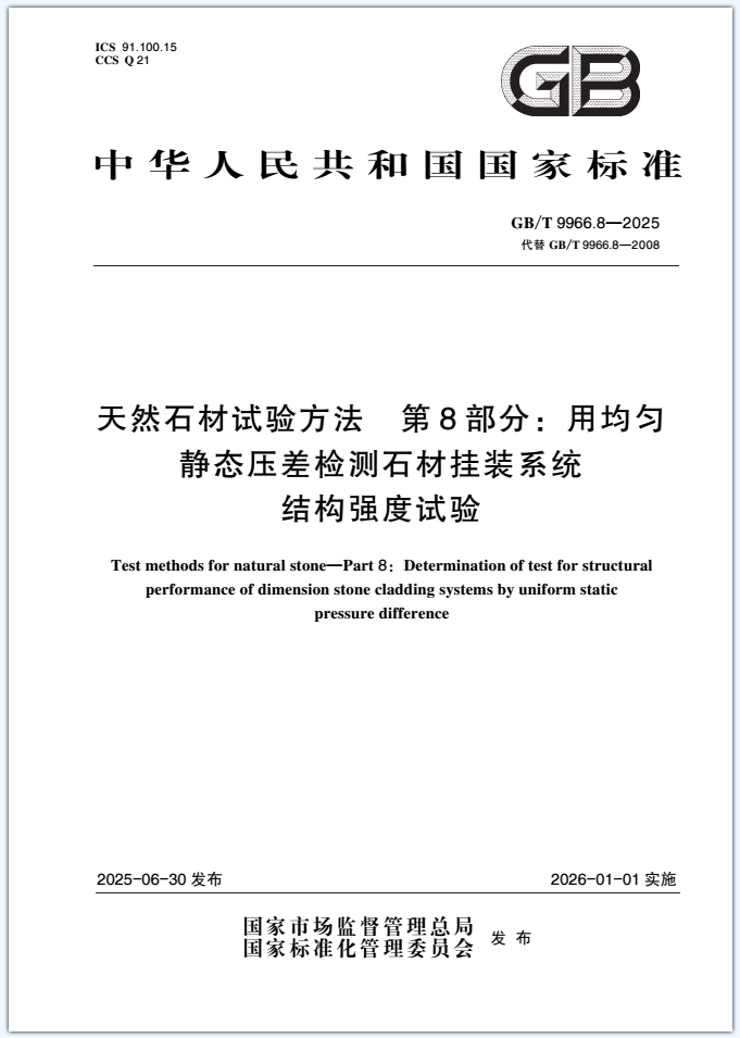 本文件规定了用均匀静态压差测试石材挂装系统结构强度试验的原理、设备及量具、试样、试验步骤、结果计算和试验报告。 本文件适用于用均匀静态压差对石材挂装系统结构的正负载荷及变形的测定。