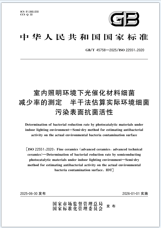 本文件适用于具有抗菌功能的室内光响应光催化材料,不适用于如水中污染物降解、自清洁、抗雾及空气净化性能的其他用途的室内光响应光催化材料。
