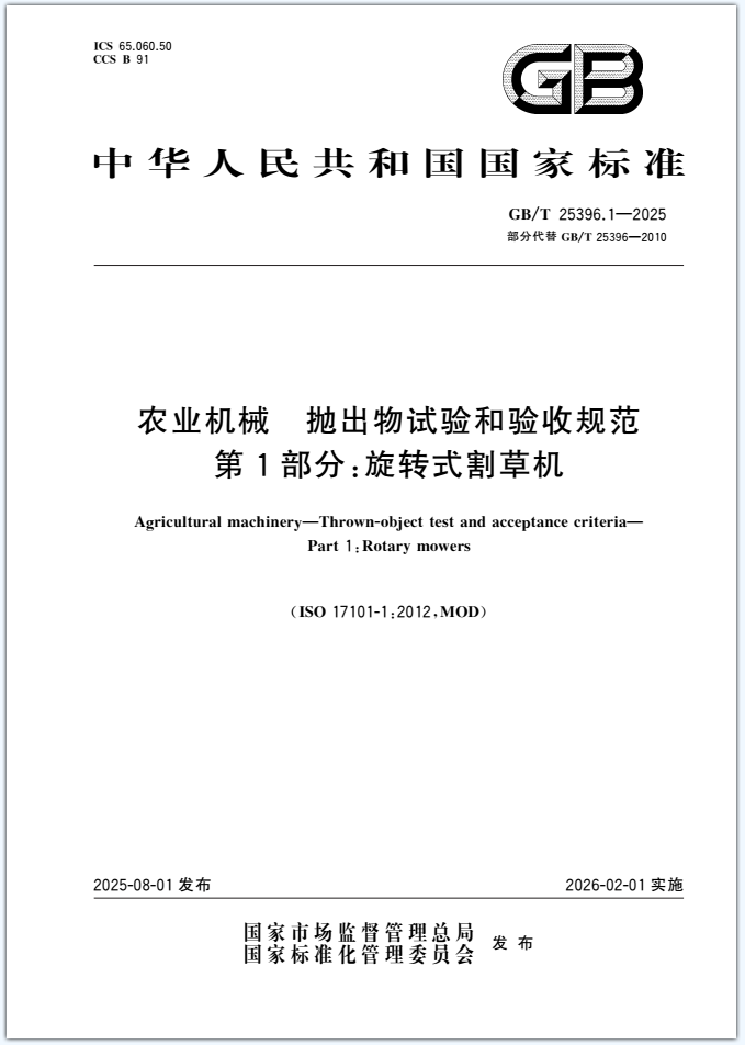 本文件规定了农业机械类旋转式割草机的抛出物试验和验收规范。