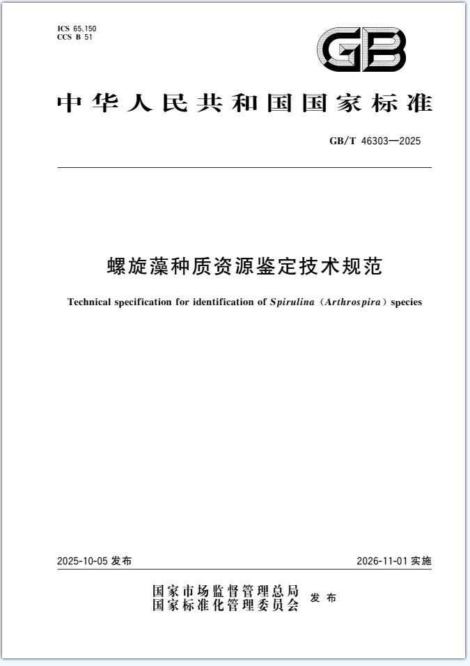 本文件规定了螺旋藻种质资源鉴定内容、结果鉴定的要求,描述了相应的鉴定方法。 本文件适用于钝顶螺旋藻(Limnospira/Arthrospira/Spirulina platensis)和极大螺旋藻(Limnospira/Arthrospira/Spirulina maxima)种质资源鉴定。