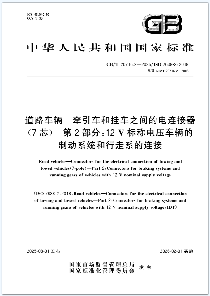 本文件规定了标称电压为12 V的牵引车和挂车之间制动系统和行走系的7芯电连接器的尺寸特性、接点分布、试验和要求。还进一步规定了当插头和插座分离时,用于存储插头的存放插座。 本文件适用于标称电压为12 V的N类牵引车,其他车辆参考使用。