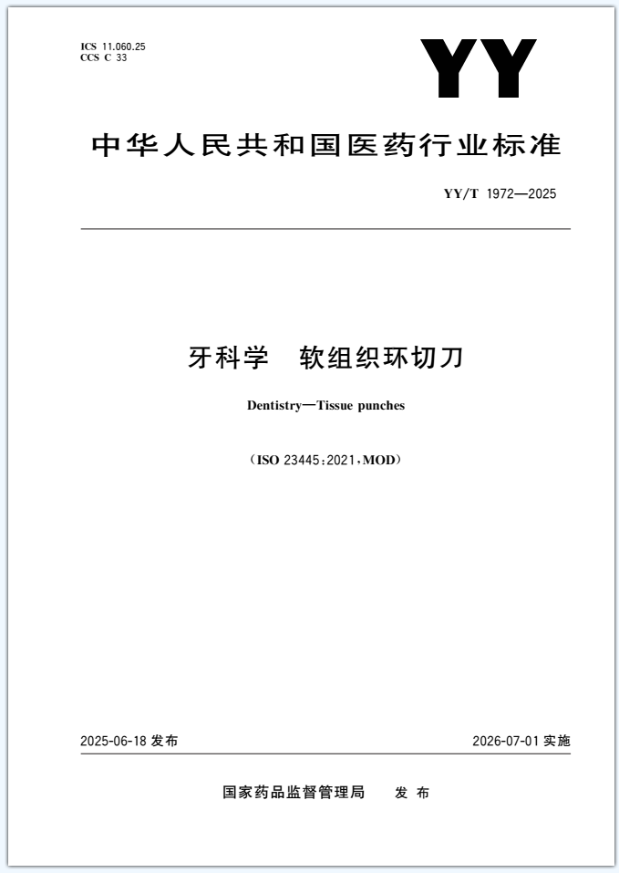 本文件规定了与牙科手机一起使用的软组织环切刀的性能要求、标记和标签信息,描述了相应的试验方法本文件适用于口腔外科植入手术中,在牙龈组织中切孔或环切并移除牙龈组织用的软组织环切刀